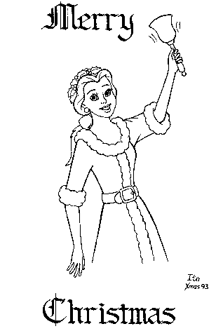 I realize this is a bit out of season, but I wasn't in a position to scan and post this when it was, so I hope you'll forgive the little faux pas. disnxmas.gif is a scan of a depiction of what a Disney holiday company party at ToonTown might be like. Thirteen of the characters from three recent Disney animated movies (The Little Mermaid, Beauty and the Beast, and Aladdin) are depicted here celebrating the spirit of Christmas with many of the time-honored traditions often associated with the season--decorating the tree, stringing popcorn-tinsel, lighting Christmas candles (it shouldn't be hard to figure out who's doing that...:-), exchanging presents, buying presents at the last minute (Eric and Aladdin, like many men, are probably off pounding desperately on store windows on Christmas Eve and are only represented by their stockings ;-), and, of course, shaking one's own presents to figure out what's inside. :-)