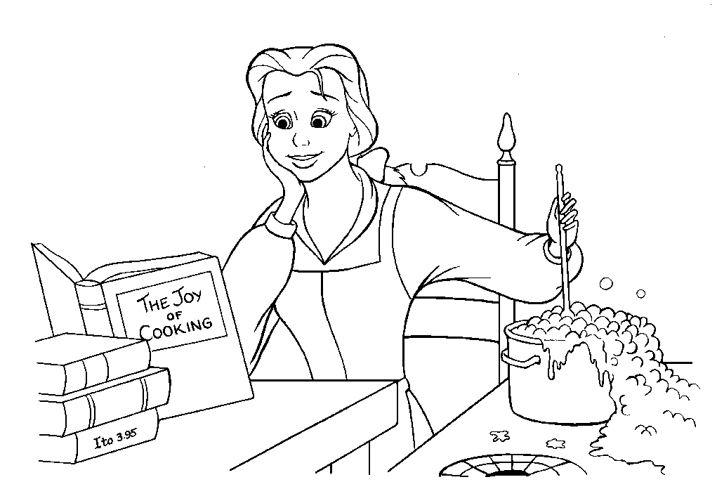 There's one thing about "Beauty and the Beast" that doesn't make sense. Who does the cooking in Belle's family? It obviously can't be Maurice, because he'd blow the house up. That leave Belle. But she's always reading, and she's always portrayed as a "modern" woman, who knows better (i.e., takeout and delivery :-) But Belle also reads cookbooks, as well, and can even apply what she's learned from them! Although, as you can see from this picture, she doesn't do this very well....