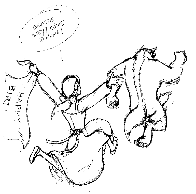 "Beast, Come to Mama!" (comemama.gif, 770x764x2, 16856 bytes) is a special Disney fanart drawing drawing from Bob Ito <ito@[...]>, and as such is not part of his "Ito Galleries, Inc." series.